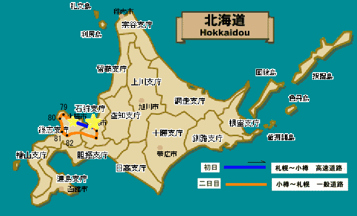 | プロローグ → 小樽(11月10日) → 小樽(ライブ) → 79.余市 → 80.神恵内 → 81.岩内 → 82.蘭越 →真狩 → 恵庭 → 恵庭(ライブ) → 北広島 → エピローグ  |