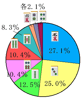 現状ではマンズ1メンツ、ピンズ1雀頭1メンツ、ソーズ2メンツが最高かな。